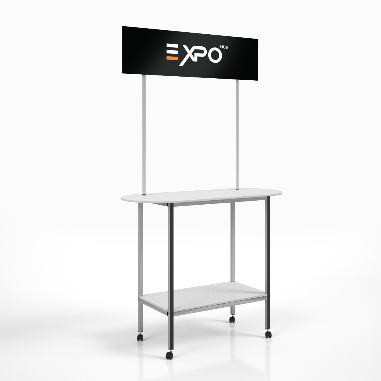 ExpoBox Elypse er en moderne smaksprøve- og kampanjestativ. Med hjul og rask oppsett er den ideell for promotering i butikker og på arrangementer.